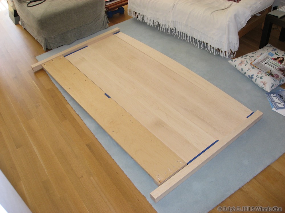 Checking the fit of the headboard before applying finish.