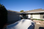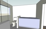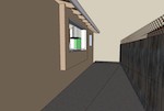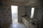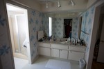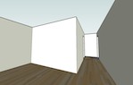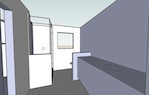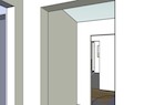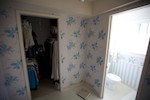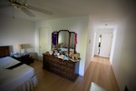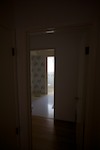 From with in the master bedroom. Just left of center you can see the 30" pocket door hiding the second closet. The hallway to the right leads to the entrance to the master bedroom and the master bath. You can see the door to the bedroom that is open. The light you see is coming from the bathroom. The openning to the bathroom is about 40" wide (way more than needed) and has no door.
